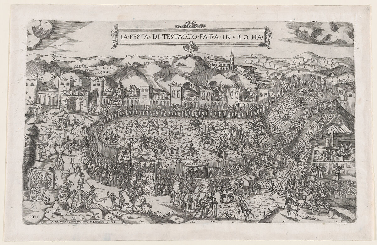 - Title: Carnival games held in the Mount Testaccio in Rome, from "Speculum Romanae Magnificentiae"
