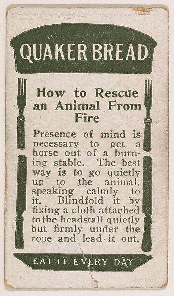 - Title: How to Rescue an Animal From Fire, No. 16, card verso, bakery insert card from the How To Do It series (D45), issued by the Welle-Boettler Bakery Company