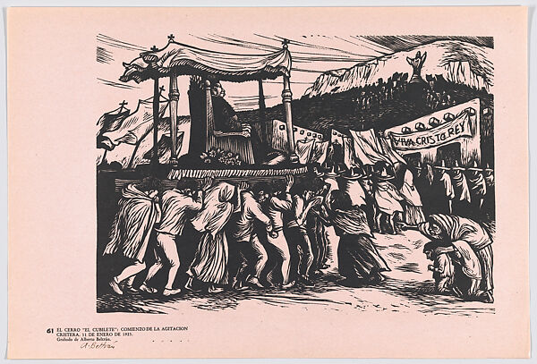 - Title: Plate 61: the apostolic representative being carried on a sedan to the monument of Christ the King, the beginning of the Cristero agitation, from "Estampas de la Revolución Mexicana" (Prints of the Mexican Revolution)