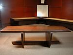 Born to Japanese parents in Spokane, Washington, George Nakashima went on to train and work as an architect in Paris, Tokyo, and Pondicherry, India. During World War II, he, his wife, and their infant daughter were sent to an internment camp for Japanese Americans, the Minidoka War Relocation Center, where Nakashima learned the craft of woodworking from an elderly Japanese carpenter. Turning his attention to furniture design, Nakashima fused elements of Japanese folk tradition and Shaker design with the linear elegance of modernism. He believed that each piece of wood had a distinctive character and soul, and he sought to give trees a “second life.” All the furniture in the Arts of Japan galleries was crafted by Nakashima from walnut polished with lustrous oil finishes.
