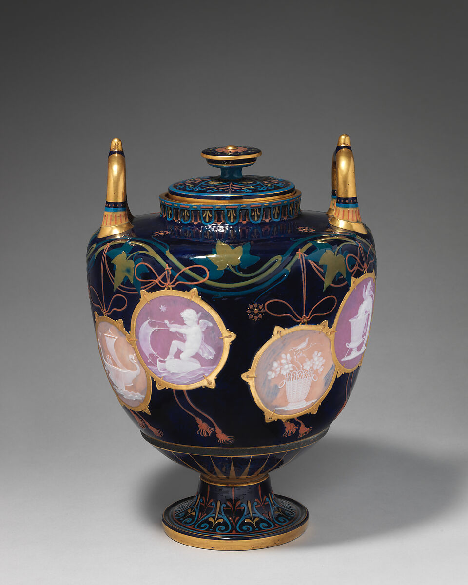 - Title: "Pompeian" vase with cover (one of a pair)