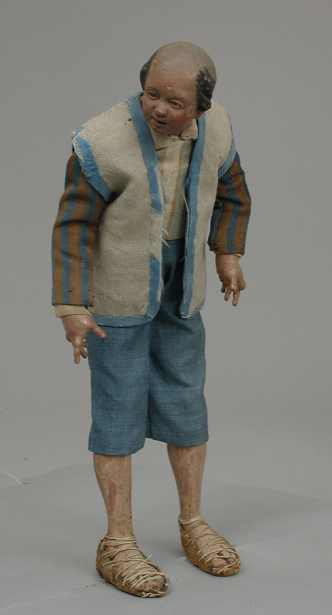 In 1964, Loretta Hines Howard generously presented to the Museum over 140 Neapolitan crèche figures, dating from the second half of the eighteenth century. The varied assortment includes figures from the three traditional scenes of a complete Neapolitan presepio: the Nativity, with angels, shepherds, and sheep; the procession of the three Magi, with their colorful retinue of attendants; and the varied and gay crowd of country and town people thronging the tavern, or inn, of Bethlehem — the diversorium mentioned by St. Luke, where on the Holy Night there was no place for Mary and Joseph. Averaging between twelve and fifteen inches in height, according to the position they were to take in perspective in the stage set, the figures are pliable and can be given poses at will, according to their facial expressions. Their bodies are made of tow and wire, their arms and legs are finely carved of wood, and their heads and shoulders are modeled of terracotta and accurately finished. Their attire, often enriched by accessories, jewels, and embroideries, is a sheer joy for the lover of folklore and eighteenth-century costumes.