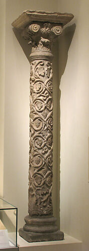 This column (with its pair acc. no. 21.172.2), along with some twenty others, are all that remain of the “Golden Church” of La Daurade. The church, which derived its name from the Latin word meaning “gilded” (deaurata), was famous for the gold mosaics that covered the niches and walls of its seven-sided sanctuary. Rows of elegant columns framing the niches contributed to its lavish interior. Founded about 399 as a convent, the church had been converted to a monastery by the 800s, before being destroyed in 1761.