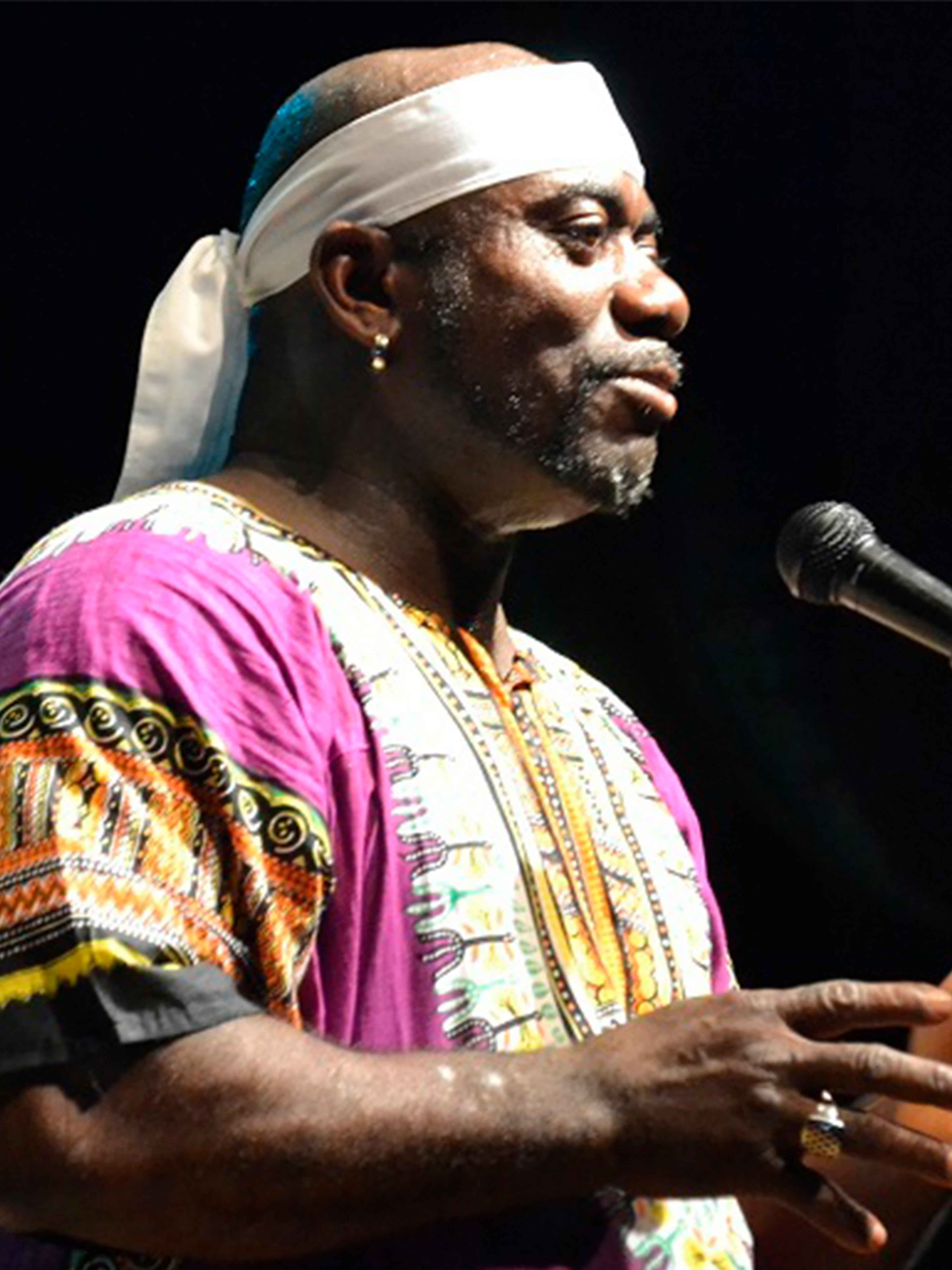 Nimely Napla is a director, master dancer, costume designer, and choreographer from Liberia. Napla came to the United States in the early 1980s when he served as director of the Liberian National Dance Company. He founded several performance companies, including the Nimely Pan African Dance Company, which has toured nationally, and he has annually hosted Panafest, a West African dance and drum performance. As an educator and artist, his community-based dance organization focuses on the study of cultural heritage and the performing arts. Over the years, Napla has developed a number of theatrical works inspired by Liberian cultural narratives and performances.