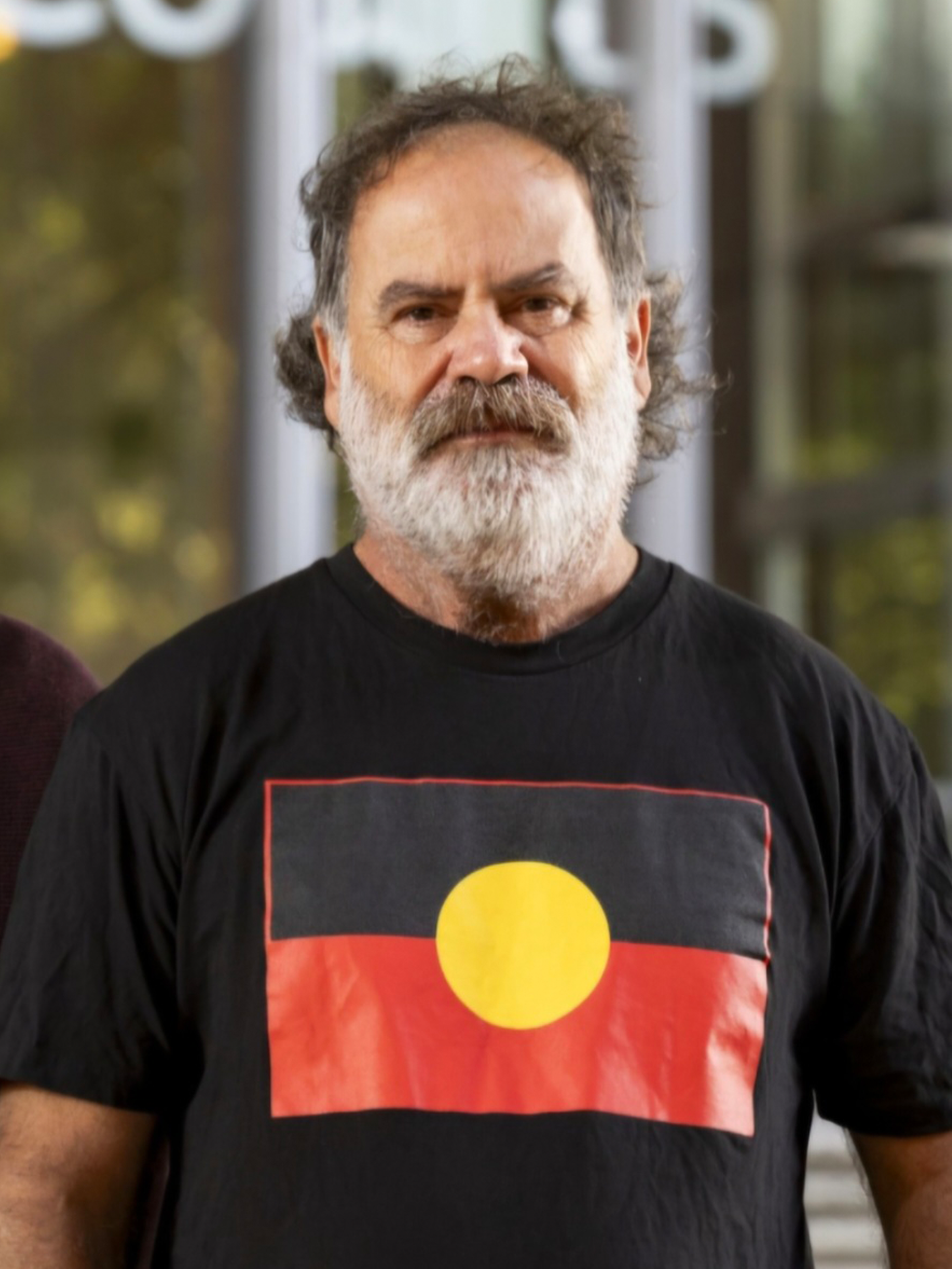 Uncle Brendan Kennedy was born at Robinvale on Tati Tati Country and is a descendant of the Tati Tati, Wadi Wadi, and Mutti Mutti language groups of southeastern Australia. Kennedy is a cultural leader and artist who specializes in painting and creating ceremonial objects. He is a member of Yulendj—the First People’s advisory group to Museums Victoria. Kennedy has previously served on the Aboriginal Cultural Heritage Advisory Committee, and he is the current Chairperson of Murray Lower Darling Rivers Indigenous Nations (MLDRIN).