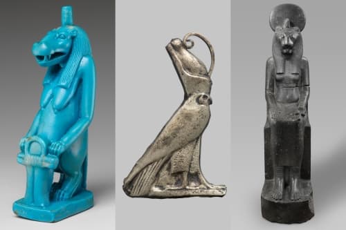 In ancient Egypt, images of gods weren’t just images—they brought the gods to life. Egyptians believed that it was through their depictions in tombs, temples, and shrines that the deities could enter sacred spaces and become active participants in rituals, offering a vital connection between the human and divine worlds. Over Egypt’s long history, its belief system grew to include more than 1,500 gods with many overlapping forms and traits. Subtle visual cues like what a figure wore, how they posed, or the symbols they carried helped identify them and their roles.