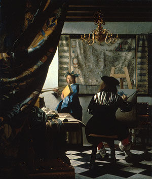Teding van Berkhout may have had The Art of Painting in mind when he recalled in his diary on June 21, 1669, visiting "a famous painter named Vermeer who showed me some examples of his art, the most extraordinary and the most curious aspect of which consists in the perspective." A more seasoned connoisseur might have mentioned the composition's refinements of pattern, shape, color, and texture and the painter's treatment of light on a variety of surfaces, including tapestry, engraving, and sculpture.