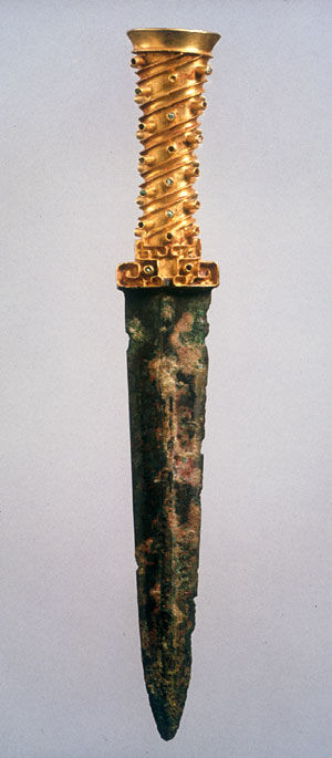 Blade, bronze; hilt, gold with turquoise inlay; L. with hilt 9 3/4 in. (24.7 cm)