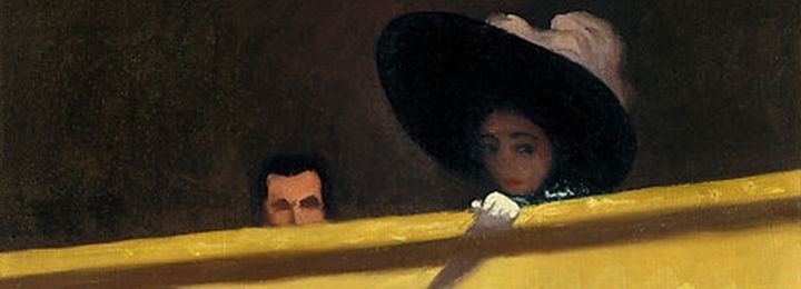 Félix Vallotton (Swiss, 1865–1925). Box Seats at the Theater, the Gentleman and the Lady (La loge de Théâtre, le Monsieur et la Dame) (detail), 1909. Oil on canvas, 18 3/16 x 15 in. (46.2 x 38.1 cm). Private Collection. Photo © Fondation Félix Vallotton, Lausanne