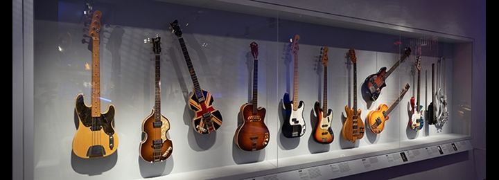 The diversity of sounds and subgenres in rock and roll has allowed its players greater freedom to choose instruments than in many other musical genres. As exemplified by the wall of bass guitars in this gallery, this has manifested in an enormous number of sizes, shapes, designs, and models.