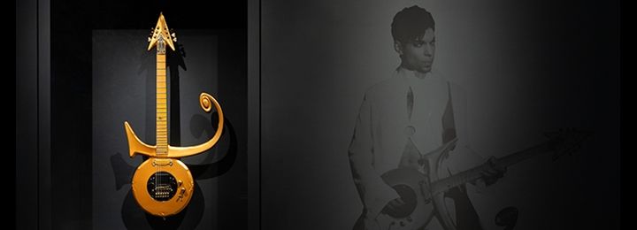 Specially decorated or designed instruments often become hallmarks of style. Solid-body guitars and basses and electric keyboards can be custom built in nearly any conceivable shape, size, or color. Striking examples on view here include Rick Nielsen's five-neck instrument, Prince's "Love Symbol" guitar, and Lady Gaga's Artpop piano. Other musicians have become so closely identified with a specific instrument over time—be it highly adorned or notably plain—that it has become a symbol of their artistic identity.