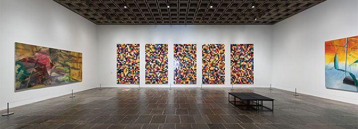 While Richter's photo-based paintings respond to the traditions of realism, his abstract works engage with twentieth-century nonobjective art practices, from gestural abstraction to Minimalist experiments with the grid. Since the mid-1960s, abstraction and figuration have coexisted in Richter's work. Yet his approach to abstraction has never been static or predictable. The diverse results include his geometrically ordered or algorithmically generated Color Charts, brushy, monochromatic fields of paint, and vividly colored, blurry compositions derived from photographic blowups of details from earlier paintings.