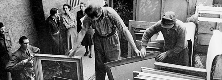 World War II had a greater impact on The Met than any other conflict in the twentieth century. The Museum evacuated works of art, organized programming to bolster morale, and helped design military equipment. In Europe, Met staff, including Directors Francis Henry Taylor and James Rorimer, contributed to the Allied response to mass looting and the destruction of monuments. This group became known as the monuments men, and their experiences had a lasting influence on the Museum and its collections after the war ended in 1945.