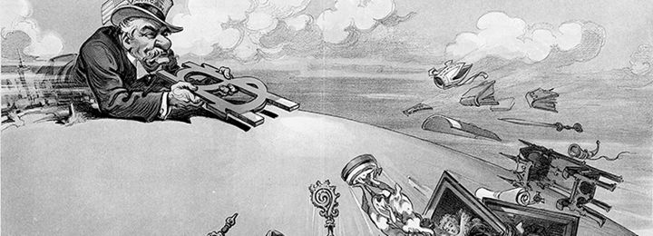 Chief among these tycoons was the financier J. Pierpont Morgan, who collected on a staggering scale—some 7,000 of his possessions eventually came to this museum, while thousands of others were equally transformative for other institutions. A contemporary cartoonist depicted Morgan as a giant magnet for a mixed jumble of objects, but he was attracted above all to rare and precious artworks from illustrious collections.