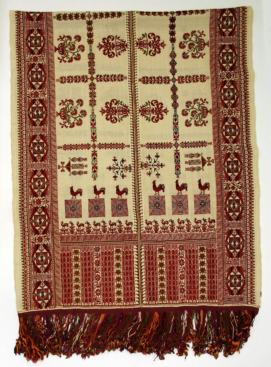- Medium: Linen, silk; embroidered