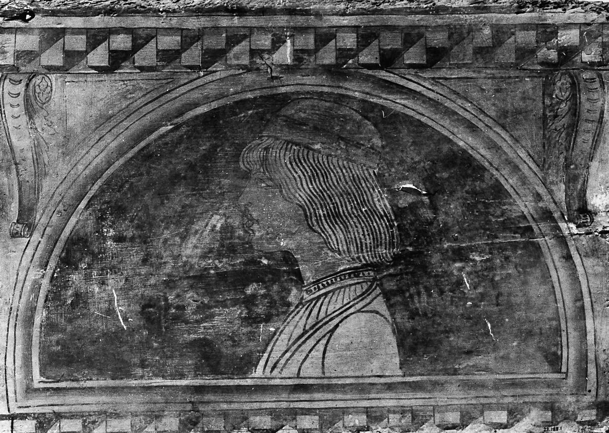 One of fourteen panels from a frieze (23.188.1–.14), each depicting a profile portrait bordered by a molding of dentils to simulate architecture.