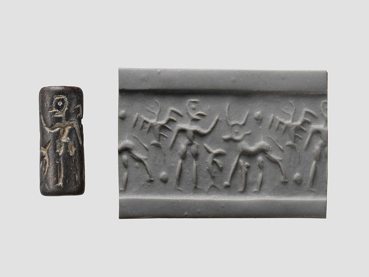 - Title: Cylinder seal and modern impression: bird, man, horned animal