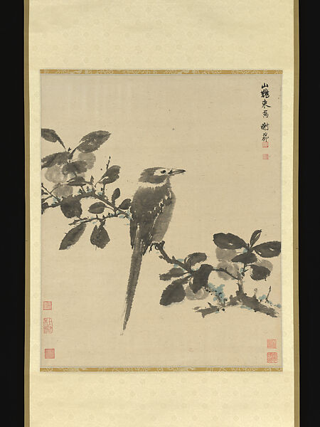 - Medium: Hanging scroll; ink and color on bark paper