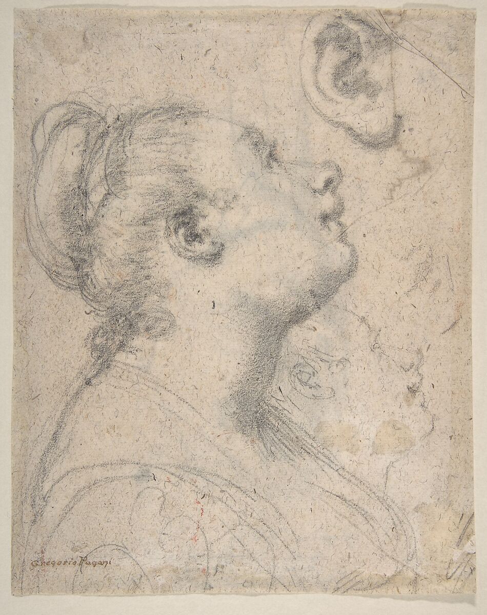 - Title: The Head and Shoulders of a Woman in Profile; Separate Studies of Her Head and Ear (recto); Fragment of Drapery Study, Profile of Architectural Molding (verso)