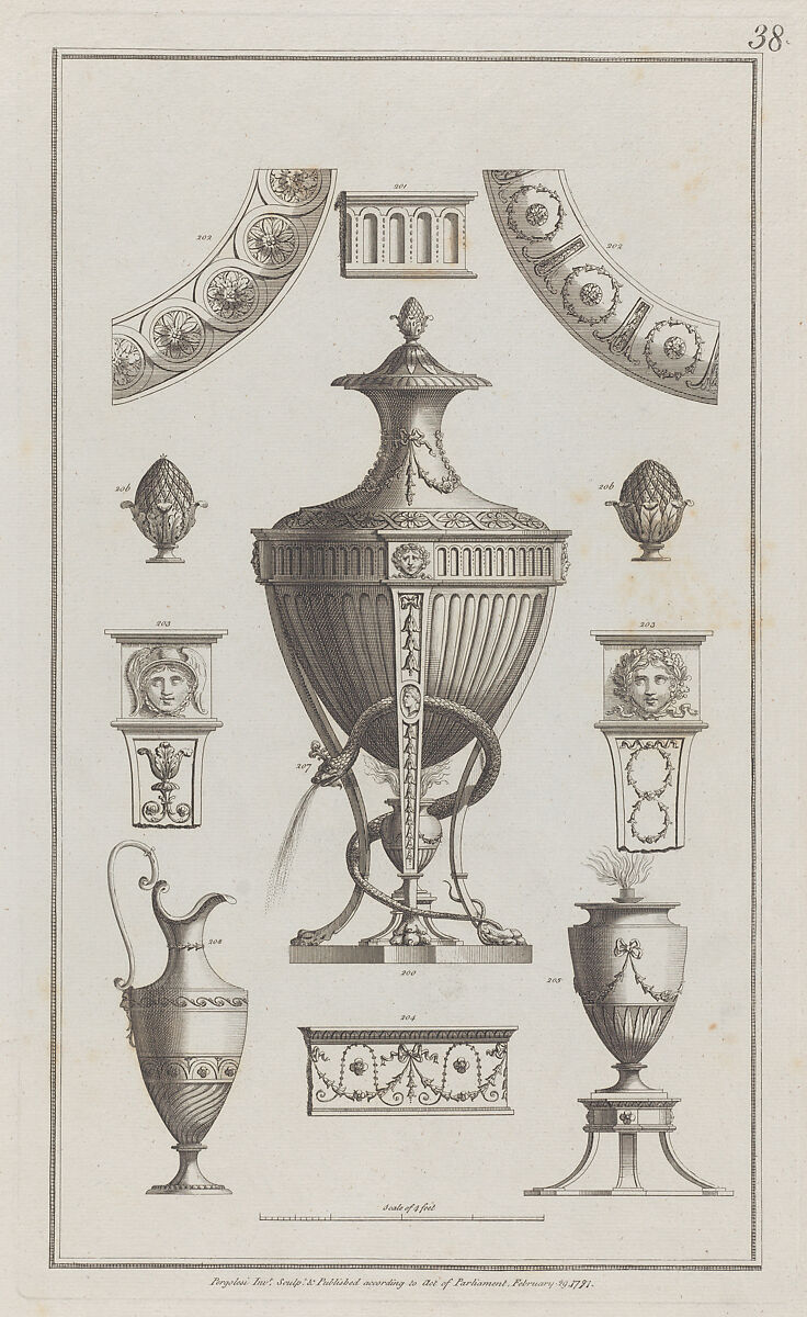 - Title: Vases and Ornament Designs, nos. 200-208, plate 38 from "Designs for Various Ornaments"