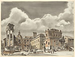 - Medium: Pen and brown ink with gray, brown, yellow and orange wash