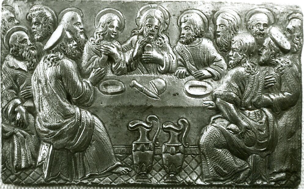 - Medium: Copper alloy, the obverse gilt, the reverse with a reddish brown patina and remnants of solder in the corners.