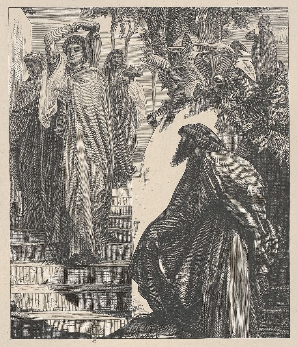 Eliezer and Rebekah, from "Dalziels' Bible Gallery"