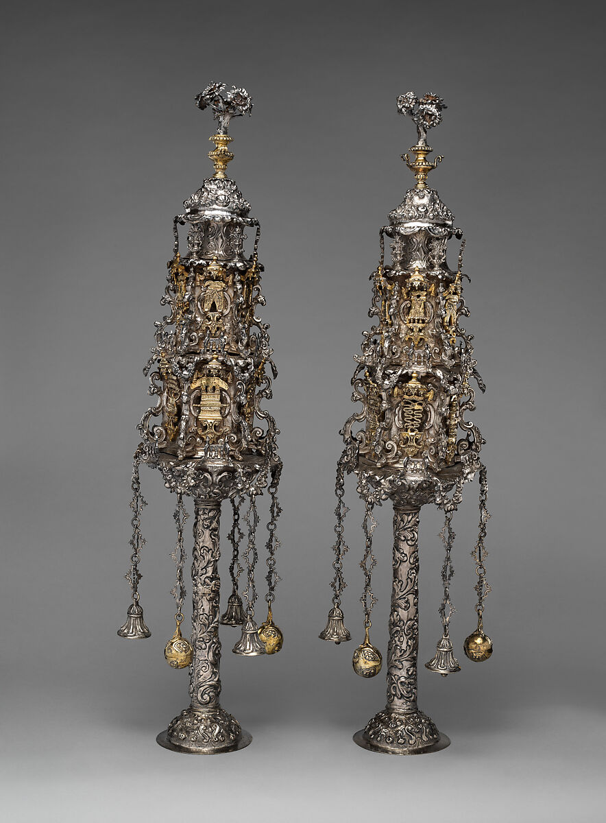 - Title: Pair of Torah finials (rimonim)