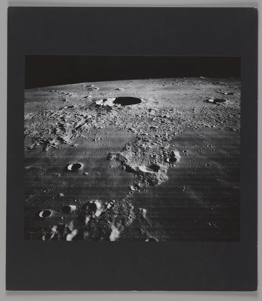 This photograph was made as part of the Lunar Orbiter program, a series of five unmanned spacecraft launched into orbit around the Moon in 1966 and 1967. Each spacecraft was equipped with a sophisticated imaging system provided by Eastman Kodak, which consisted of a dual-lens camera, film processing and handling units, and a readout scanner for transmitting the images back to Earth. The main purpose of the program was to select lunar landing sites for NASA’s manned Apollo Missions.