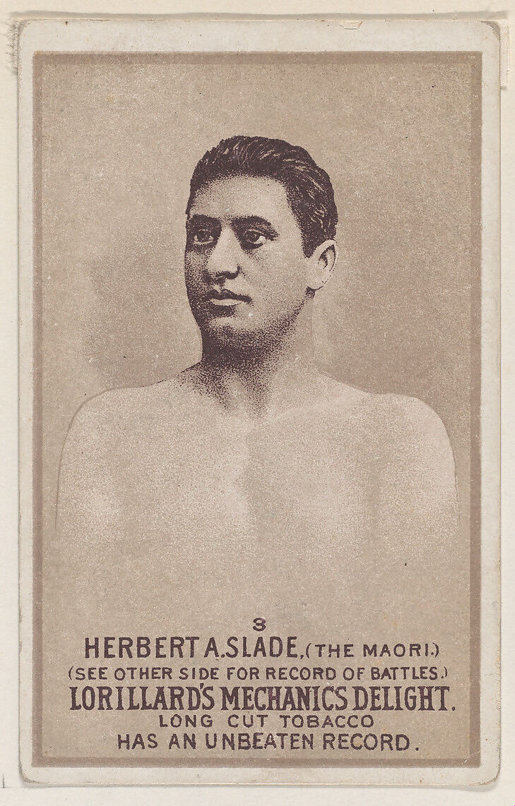 - Title: Card 3, Herbert A. Slade, The Maori, from the Prizefighters series (N269) issued by P. Lorillard Company to promote Mechanics Delight Long Cut Tobacco