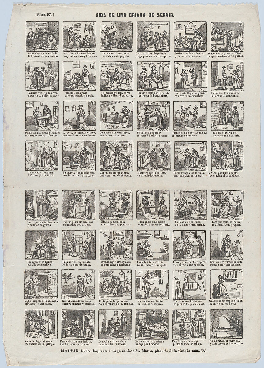 - Title: Broadside with 48 scenes depicting the life of a servant girl