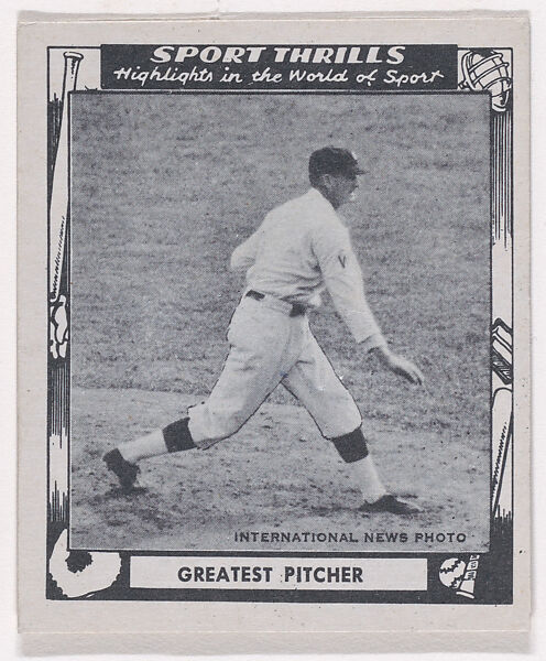- Title: Greatest Pitcher, from the "Sport Thrills" series (R448), issued with Swell Bubble Gum by the Philadelphia Chewing Gum Corporation