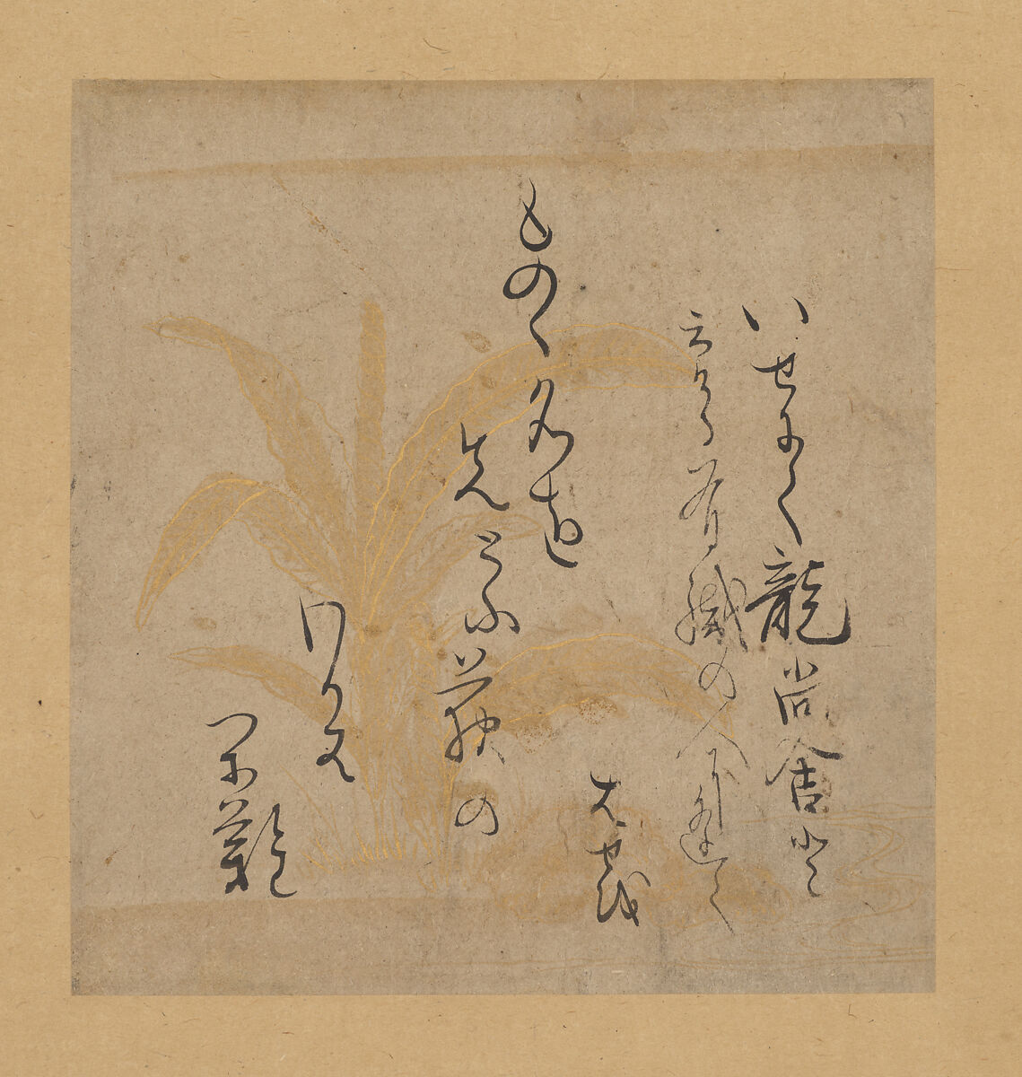 - Medium: Shikishi mounted as hanging scroll: ink on paper decorated with gold