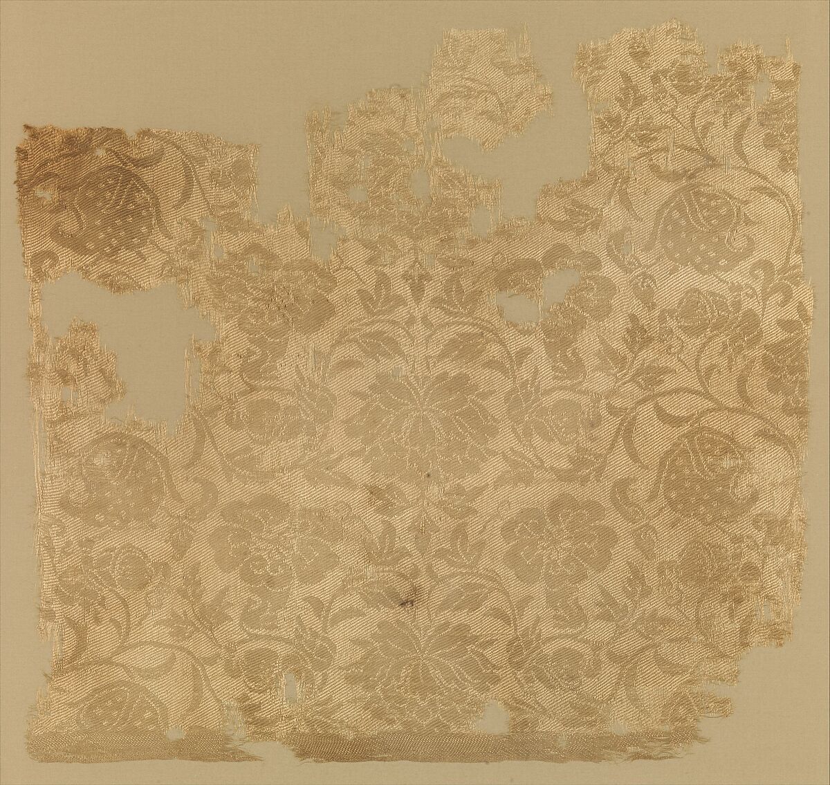 - Title: Textile fragment with boys in floral scrolls