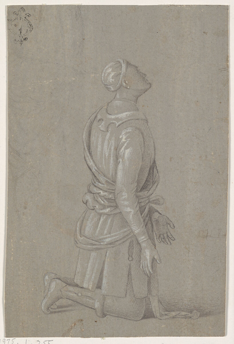 - Title: A Kneeling Man in Fifteenth-Century Costume (recto); a small, fragmentary sketch of a recumbant boy, probably by a later hand (verso)