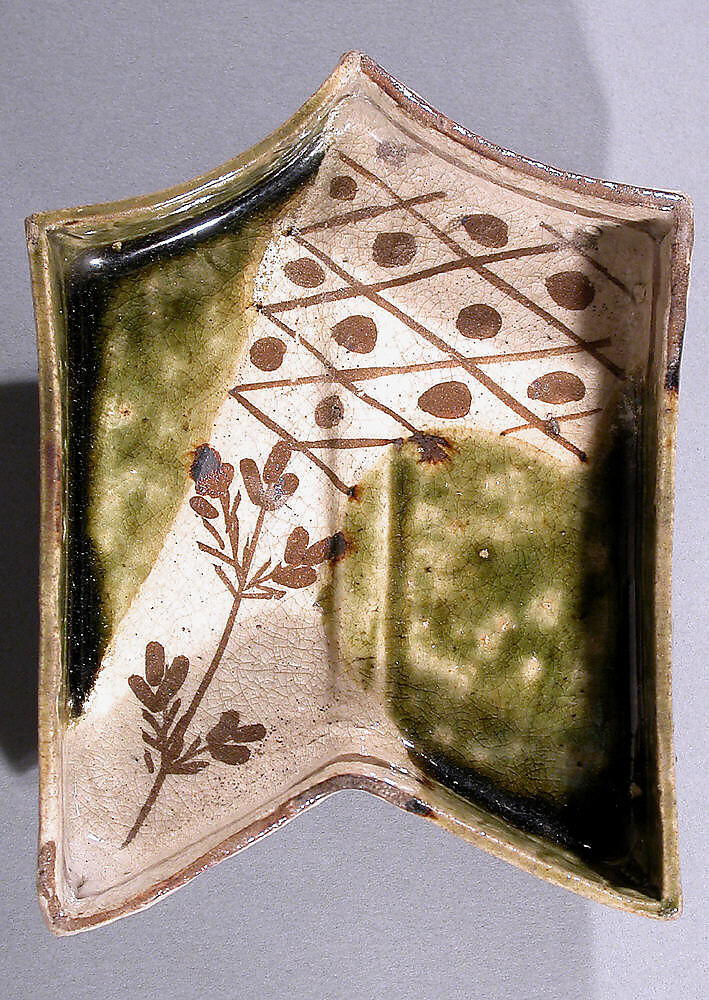 - Medium: Stoneware with underglaze iron brown and copper-green glaze (Mino ware, Oribe type)