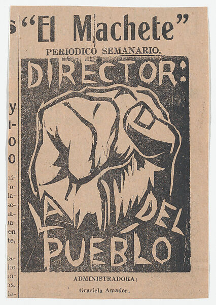 - Title: A clenched fist with the words 'Director del la Pueblo', from the newspaper l 'El Machete'