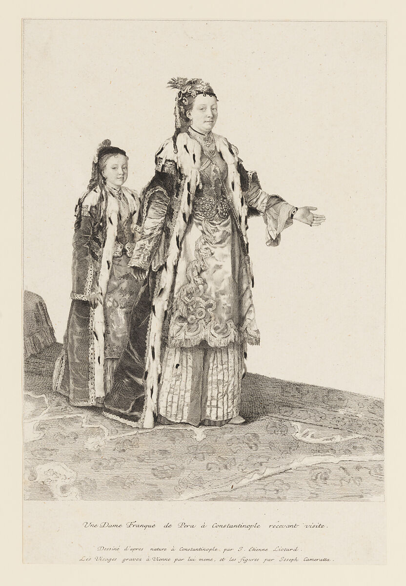 - Title: A woman of European descent in Pera, Constantinople receiving visitors, followed by a young girl (Une Dame Franques de Pera à Constantinople recevant visite)