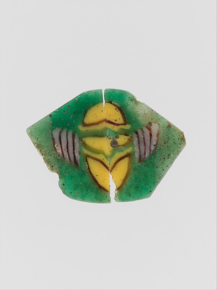The inlay is made from two sections cut from the same cane of mosaic glass, with decoration appearing in mirror image.