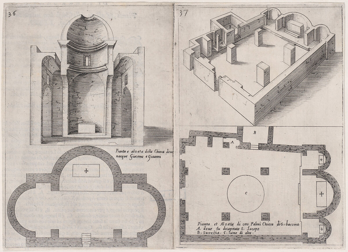 - Title: Plates 29 and 30, from "Trattato delle Piante & Immagini de Sacri Edifizi di Terra Santa" (Treatise of the Plans & Images of the Sacred Buildings of the Holy Land)