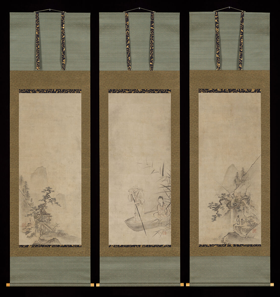 - Medium: Triptych of hanging scrolls; ink and color on paper