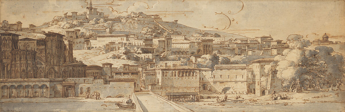 - Medium: Pen and brown ink, brush and gray wash, over traces of black chalk on two joined sheets of paper