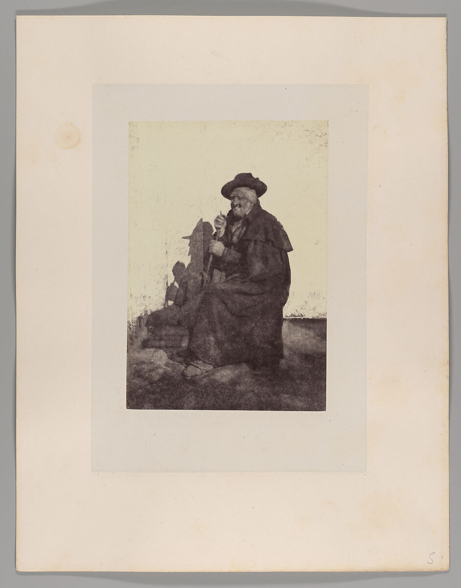This study forms part of a larger body of work—of so-called Spanish “types”—which Alphonse Delaunay made between 1851 and 1854. The artist gathered people of various ages and diverse occupations, including this elderly man, to record a broad array of nineteenth-century Spanish life. The impulse to photographically document and classify physiologies and social appearances was inevitably entwined with imperialism, surveillance, and racial stereotyping, but the improvisational quality of Delaunay’s photographs (especially some of the deliberate, awkward poses) suggests that they initially were intended as source material for artists.