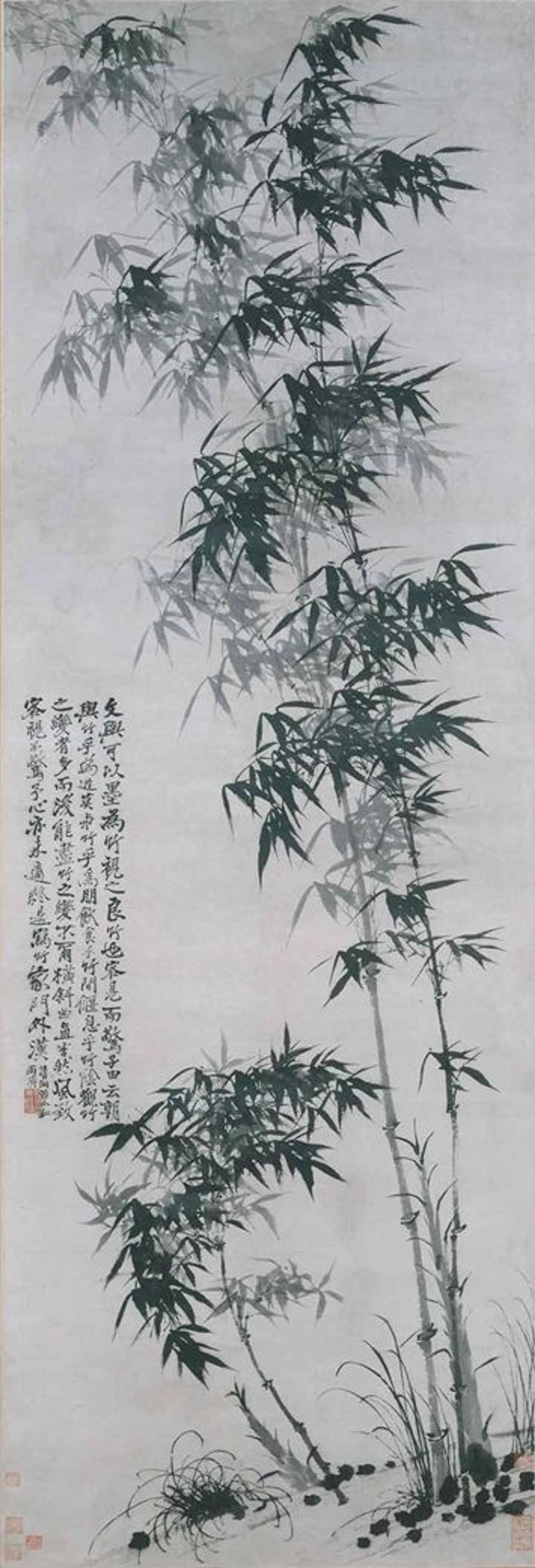 Chinese painters like to relate stories from the past that deepen the significance of their works. On his 17th-century painting of bamboo, the painter Shitao (1642–1707) records the comments of Su Che, an 11th-century scholar who once praised a friend's painting on the same subject: