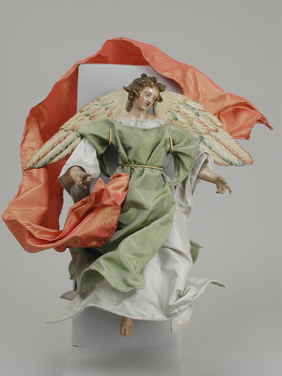- Medium: Polychromed terracotta head; wooden limbs and wings; body of wire wrapped in tow; various fabrics