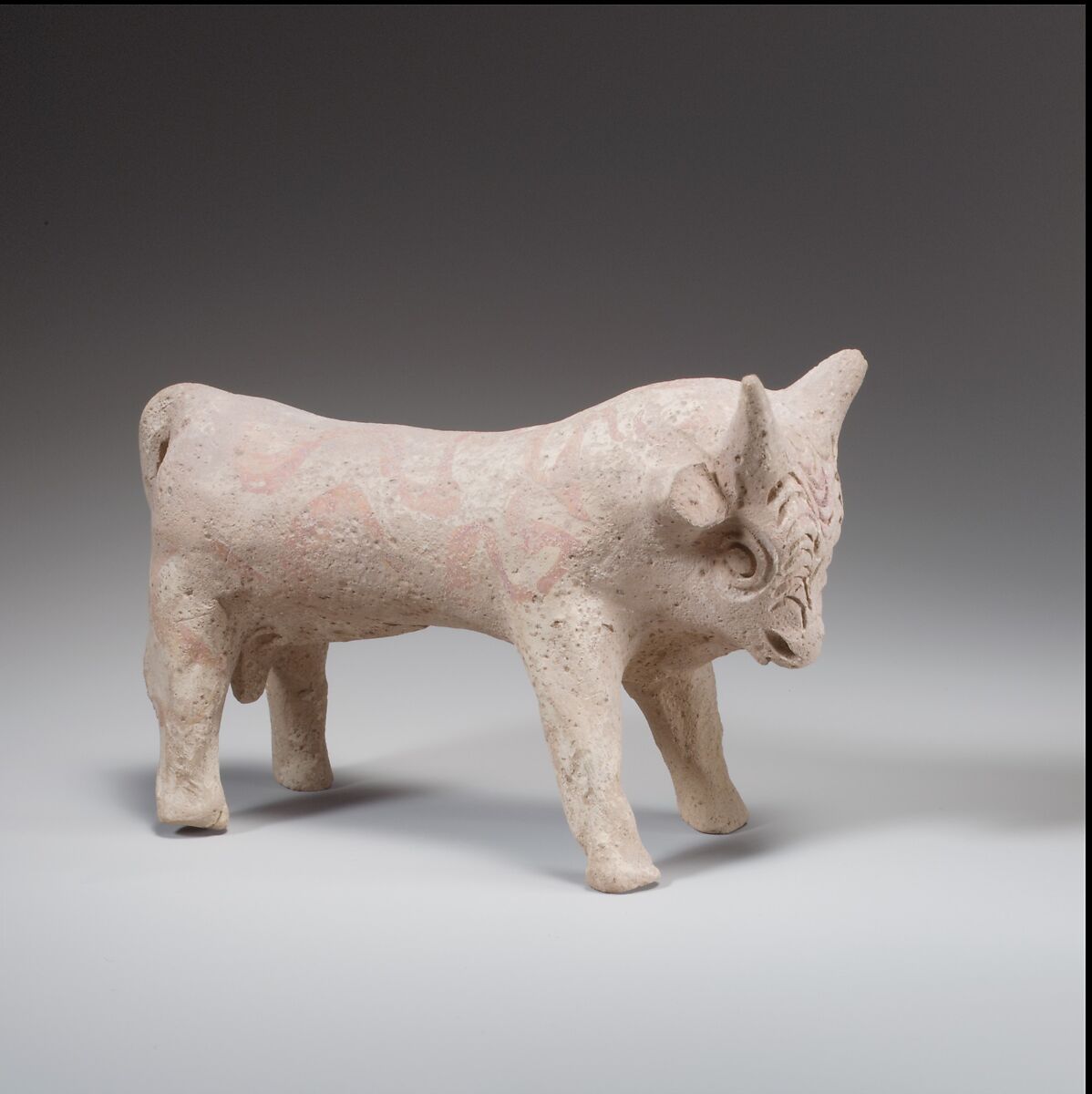 Several bull figurines of Base-Ring Ware have been found, mainly in sanctuaries but also in tombs. They date from the Late Cypriot IIC-III periods. They should be distinguished from the Base-Ring Ware rhyta (zoomorphic vases) of the same period, which are found in tombs. Some Base-Ring Ware bull figurines were also found in the Levant.