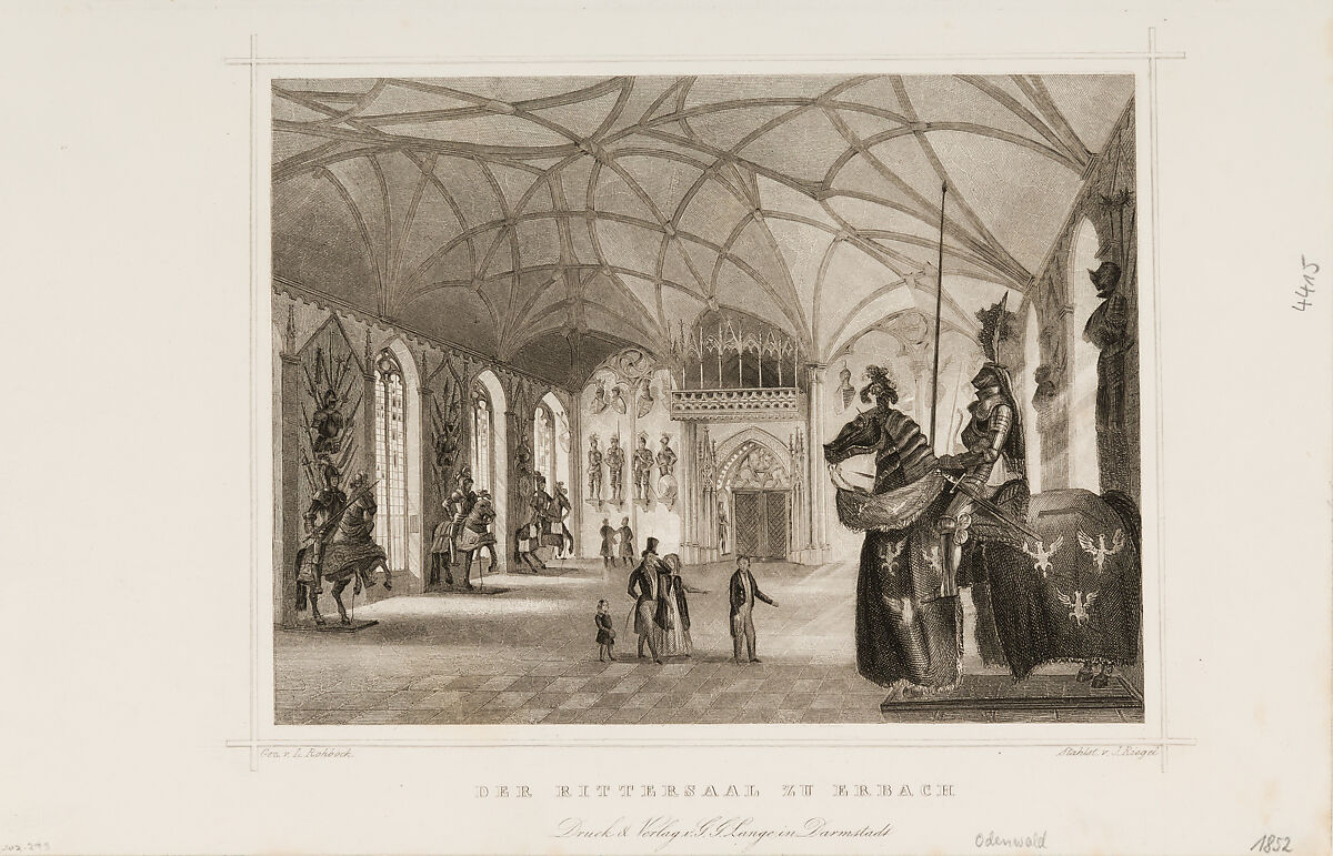 - Title: Print of Der Rittersaal zu Erbach (Interior of Gothic Revival armory of Erbach Castle)