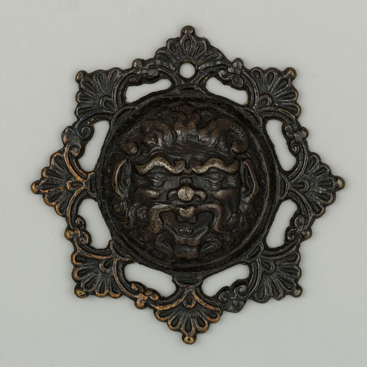 This object belongs to a large group of bosses using a series of rims and centers combined in different ways. The exact center of production of these bosses is still unclear. If the motifs used are Italian, the scale of the production and the process of combining a series of rims and center recalls contemporary German practices. Some of them, however, are identical or very similar to bosses seen in several early 17th-century Netherlandish paintings, a likely origin for the manufacture of these objects.