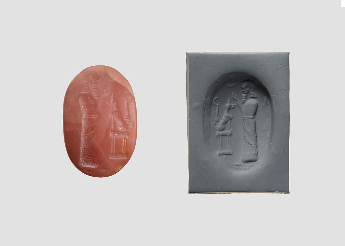 - Title: Stamp seal (oval conoid) with cultic scene