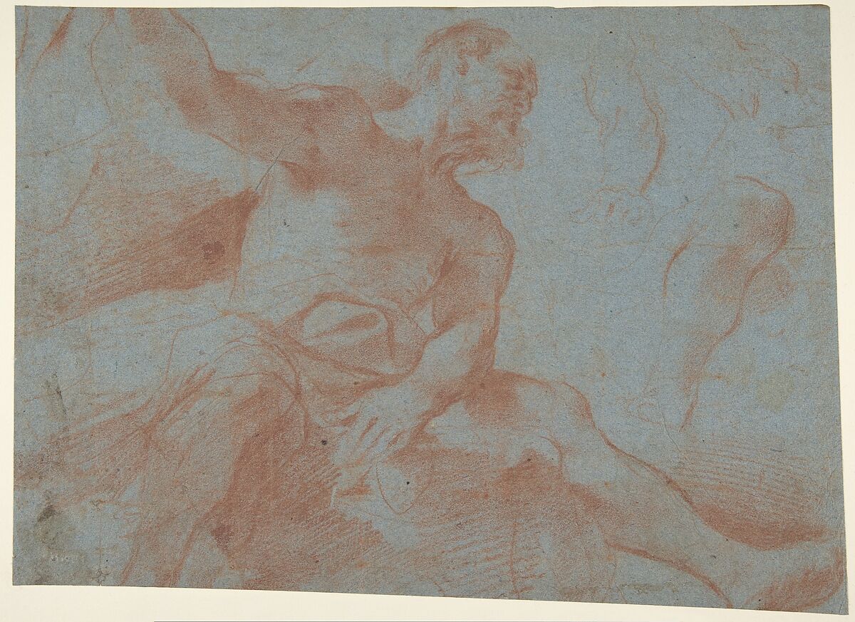 - Title: Seated Old Man with Right Arm Upraised (Tithonus) (recto); Seated Nude Youth (figure of Day) (verso)